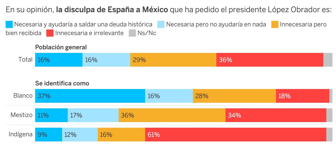 Afri, que a mí me parece una soplapollez lo de tener que pedir perdón por el 12O y conquista posterior. Como bien pones en gráfico reciente, los más preocupados por ello son los blanquitos de buena posición (porque son blanquitos) mientras que a los indígenas les suda mayormente.