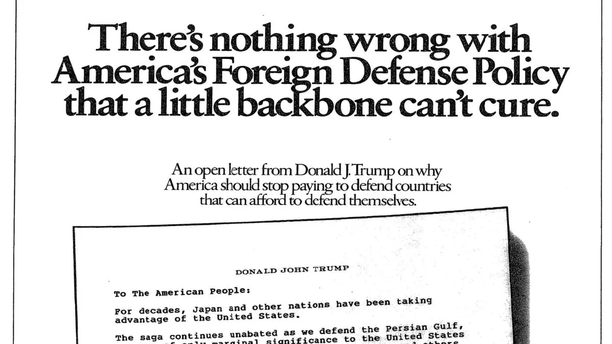 Lo que sí es un hecho comprobable es que, poco después del viaje, en septiembre de 1987, cuando Trump coqueteó por primera vez con una carrera presidencial, pagó casi 100.000 dólares, según un portavoz entonces, para publicar un anuncio a toda página en el New York Times, el Washington Post y el Boston Globe. El anuncio, centrado en atacar a Japón y Arabia Saudí, se presentaba como “una carta abierta de Donald J. Trump sobre por qué Estados Unidos debe dejar de pagar por la defensa de países que pueden permitirse defenderse a sí mismos”.