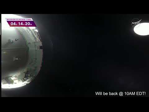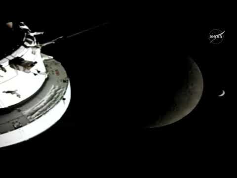 Eso de la derecha es la Luna. La Orion está a 37000km, dentro ya de la zona de influencia gravitatoria (hace 8 horas). A partir de las 7 de la tarde hasta las 3 de la mañana se producirá la maniobra de órbita alrededor de la Luna