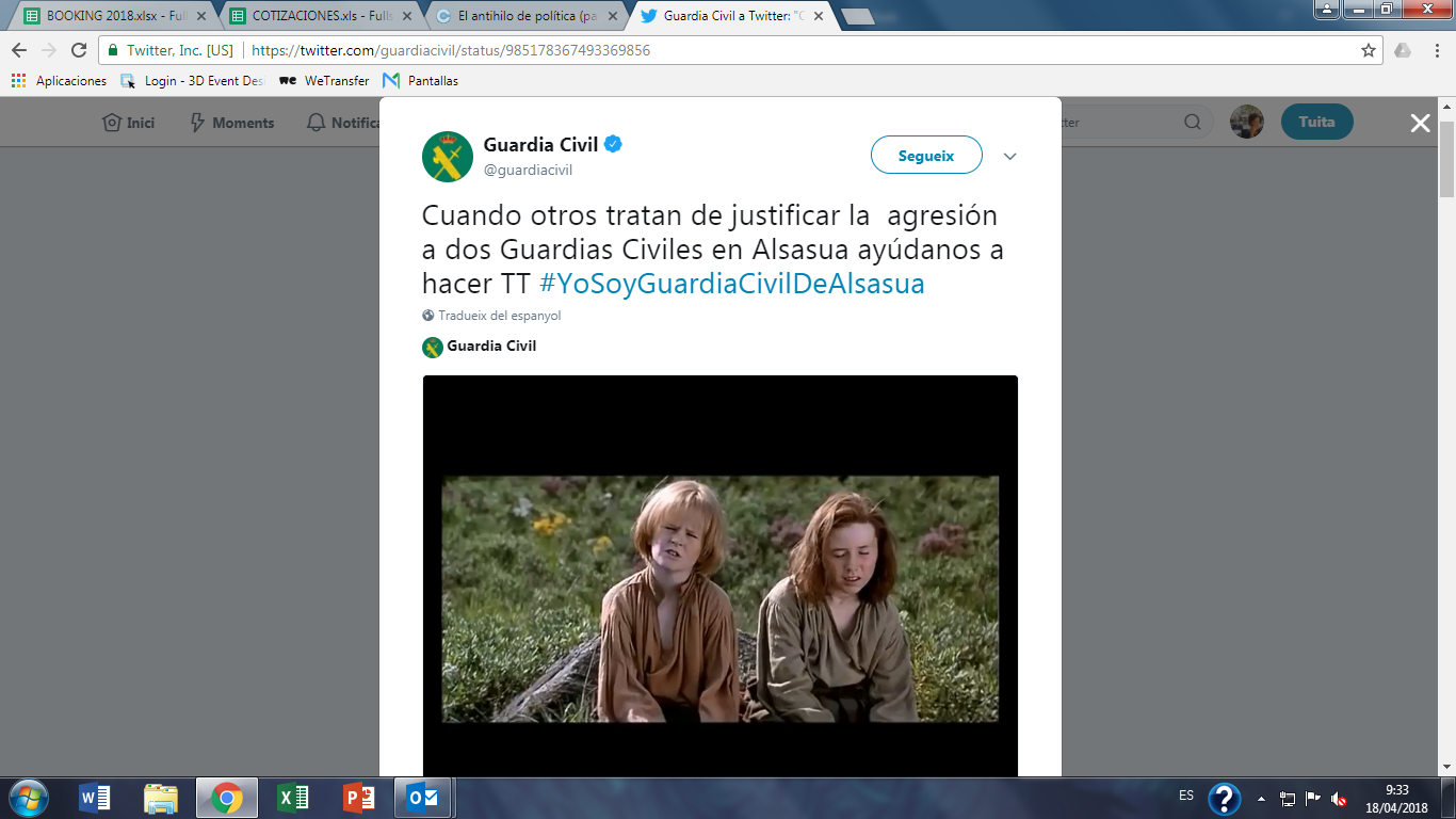 Es cierto que la reforma del 2015 del PPSOEz en un entorno paranoide por el terrorismo yihadista (sí, ese que apoyamos todo el Occidente en Douma, Siria) ha creado más arbitrariedad en la interpretación, pero también es cierto que son los jueces los que deben aplicar la legislación correctamente y proporcionalmente, dentro de la amplitud que esta legislación ha permitido, que para eso les pagamos, coño. Y si no, fuera, ya basta que se crean intocables. Los que tengan experiencia en juzgados sabrán de lo que hablo.