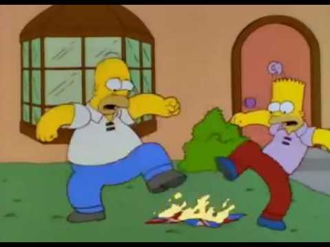 Los simpson queman la bandera británica y para apagarla le tiran estiercol.