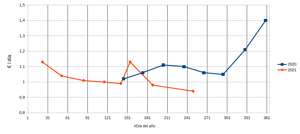Coste en esta factura 1,05 €/día