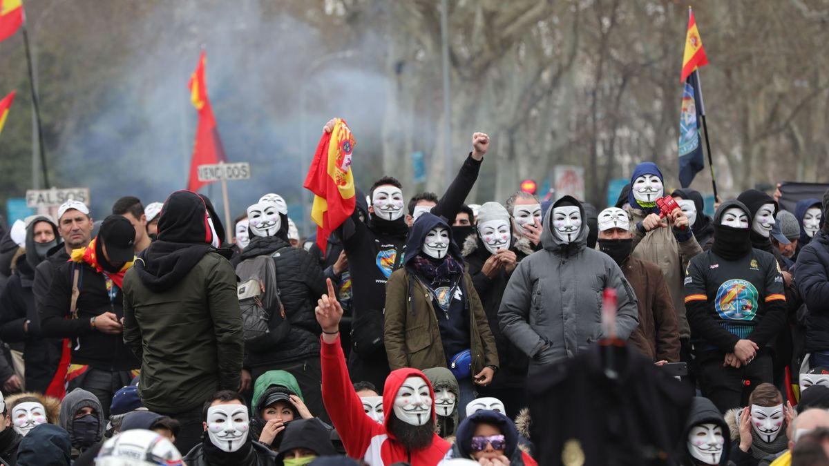 Recordemos que la máscara viene de una película (y un cómic que se puede considerar anarquista) en la que el héroe lleva la lleva puesta y lucha contra una dictadura que no deja ni un mínimo margen de libertad. Una dictadura que se impone precisamente porque se arroga poderes que son una versión extrema de los que una policía normal tiene. Poderes que ahora la policía y la guardia civil ven reducidos y protestan contra esa reducción llevando una máscara que significa exactamente lo contrario.
